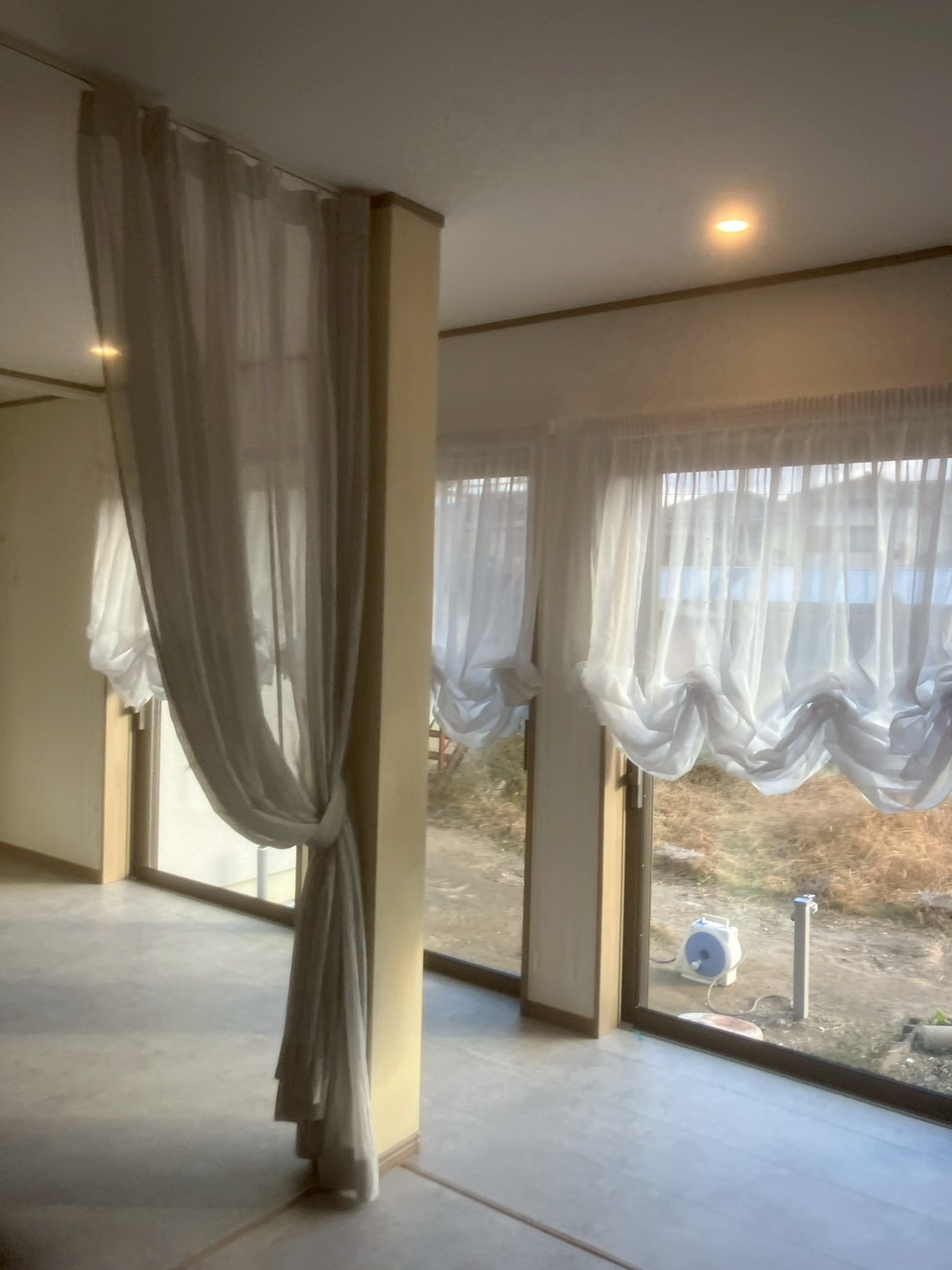 バルーンシェード・レースカーテン 【バルーンシェード・レースカーテン】 ・バルーンシェード プレーンスタイル FT7507(川島織物セルコン) ふわっと柔らかい質感のレースで、ギャザーの女性らしさとたくし上げた時の優雅な雰囲気が気分を上げてくれます。下部は降ろした時はストレートになります。 ・レースカーテン FT7017(川島織物セルコン) しわ加工を施したレース。適度な透け感があって空間を上品に仕切ってくれます。